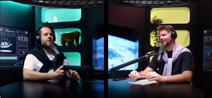 Florentin und Stefan in ihren eleganten DAS PODCAST UFO Clubhaus Outfits