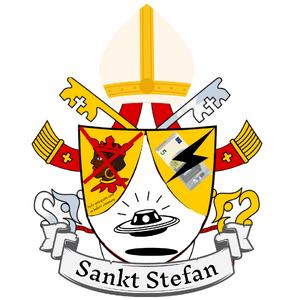 - Papstwappen, das von Franziskus erscheint problematisch, Stefan würde eines wählen: Schwarzer Kopf rot durchgestrichen auf weißem Grund, darunter SS (Sankt Stefan)